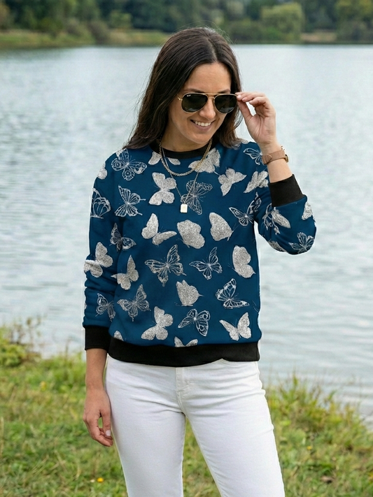 Austria Vibe Cute Butterfly Print Blue Sweatshirt