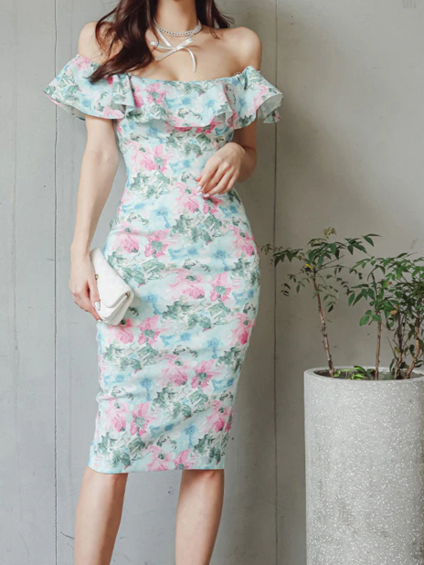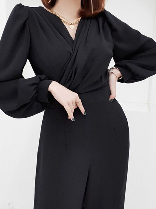 Elegant Ruffle Black Slim Pencil Bodycon Dress