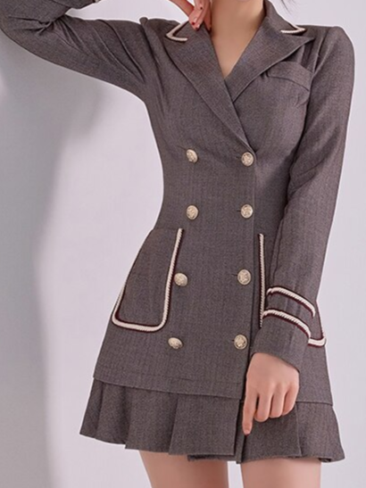 Formal Style Double Breasted Pocket Decor Blazer Dress