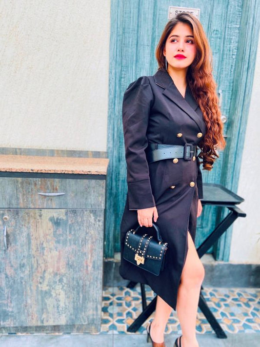 Formal Style Puff Sleeve Double-Breasted Blazer Dress - Ships in 24 Hrs