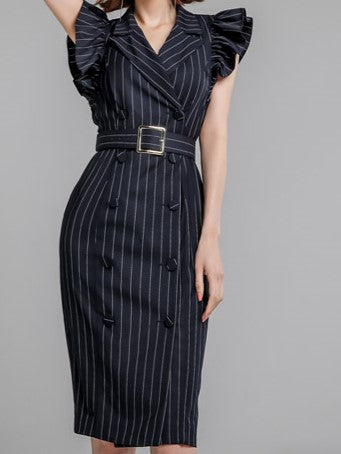 Formal Fashion Striped Black Sleeveless Dress - Ships in 24 Hrs