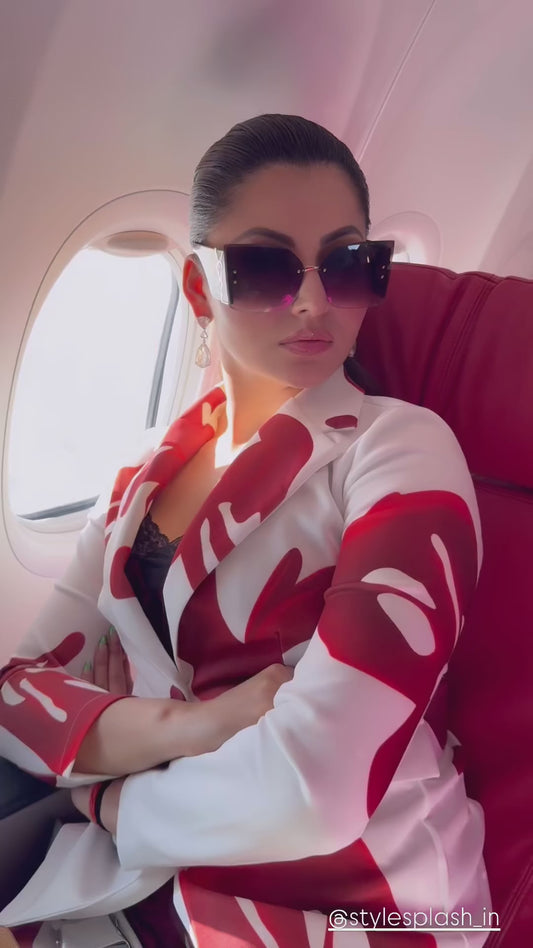 Modern Printed Matching Blazer And Pants Red Set