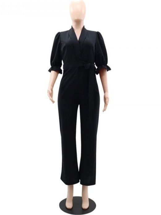 New Arrival Black Solid High Rise Jumpsuit
