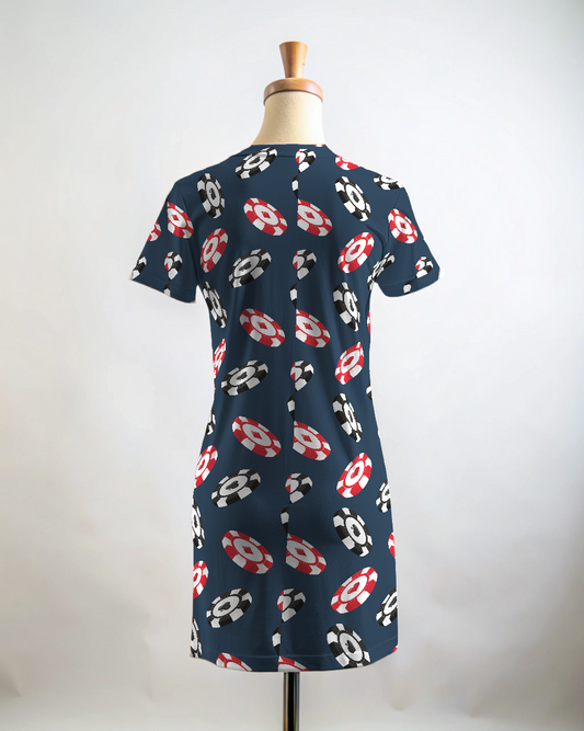 Playful Poker Chips Print T Shirt Dress