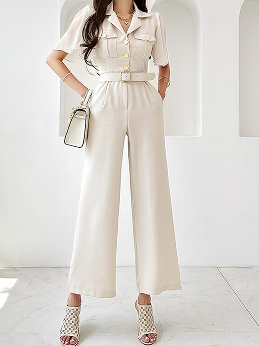 Sophisticated Business Wide Leg Apricot Jumpsuit