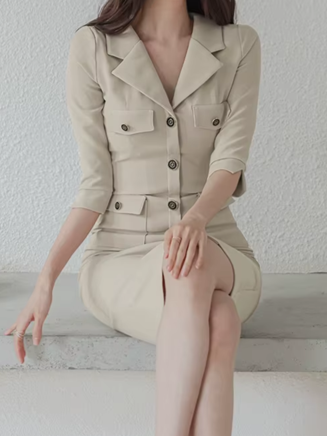 Sophisticated Apricot Single Breasted Bodycon Dress