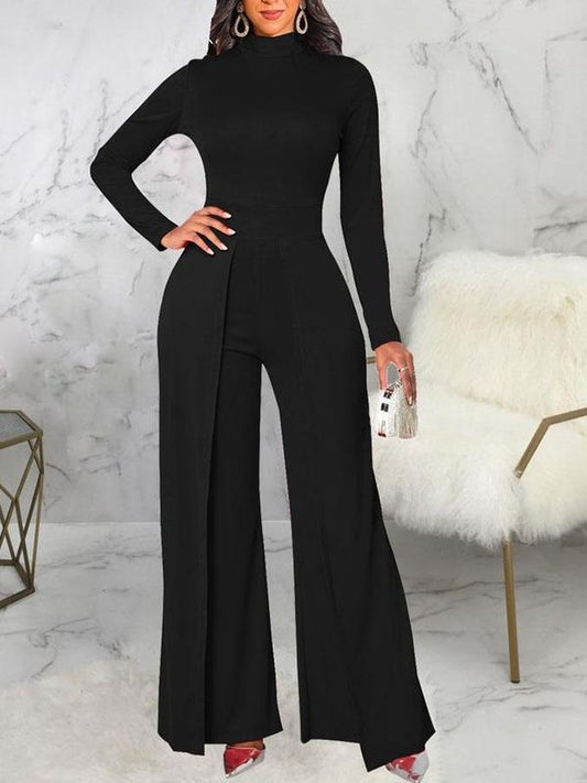 Stylish Mock Neck Wide Leg Jumpsuit - Ships in 24 Hrs