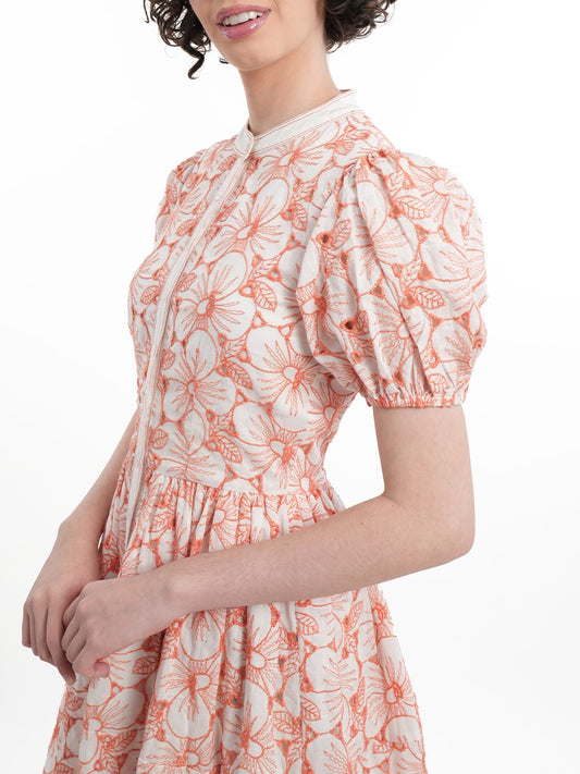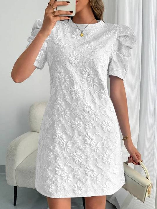 Sweet Floral Texture Puff Sleeve A Line White Mini Dress