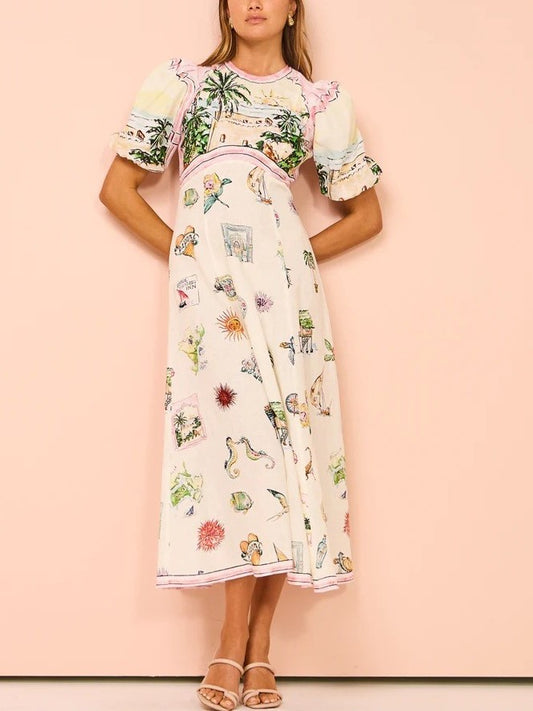 Sweet Ruffle Zipper Short Sleeve White Dress