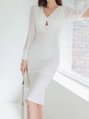 Vintage Long Sleeve Bodycon White Pencil Dress