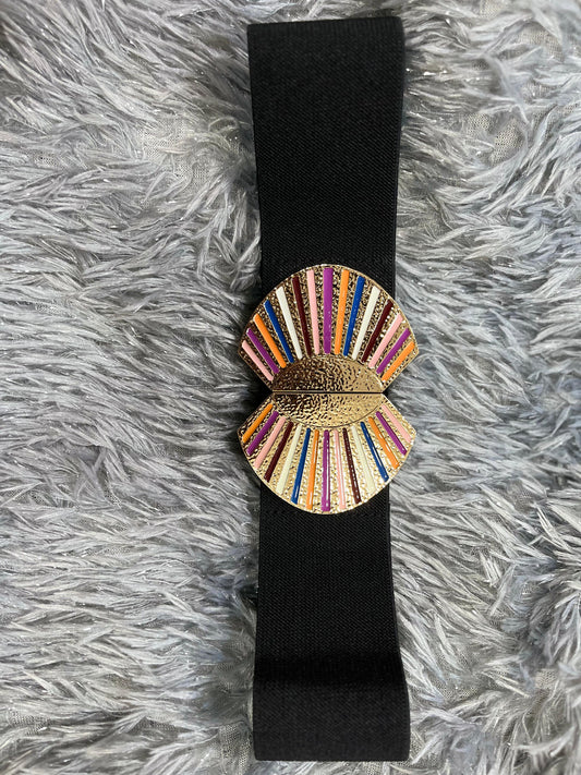 Must Have Multi Coloured Buckle Stretchable Black Belt