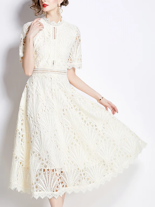 Beautiful Lace Crochet Apricot Midi Dress