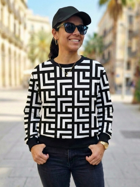 Dubai Vibe Geometric Print Black Sweatshirt