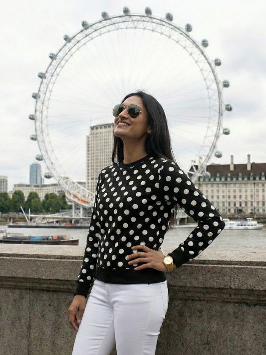 London Vibe Evergreen Polka Dot Print Black Sweatshirt