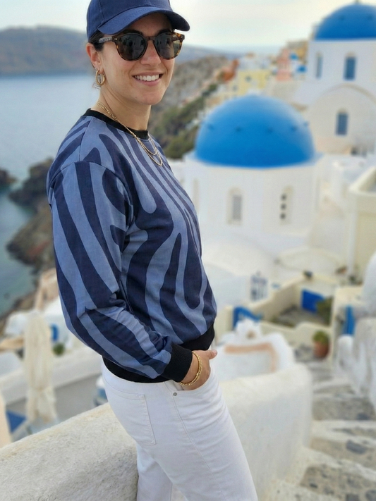 Santorini Vibe Animal Print Blue Sweatshirt