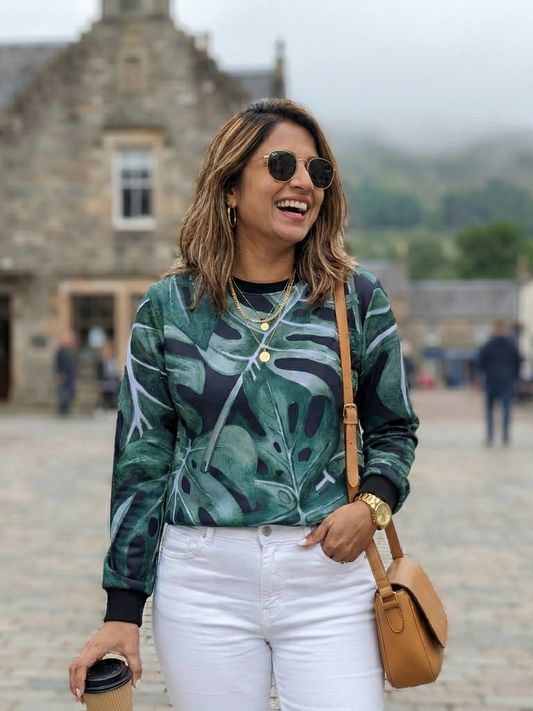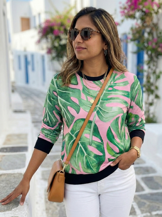 Cambridge Vibe Sweet Leaf Print Green Sweatshirt