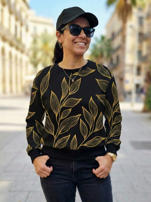 Greece Vibe Leaf Print Black Sweatshirt
