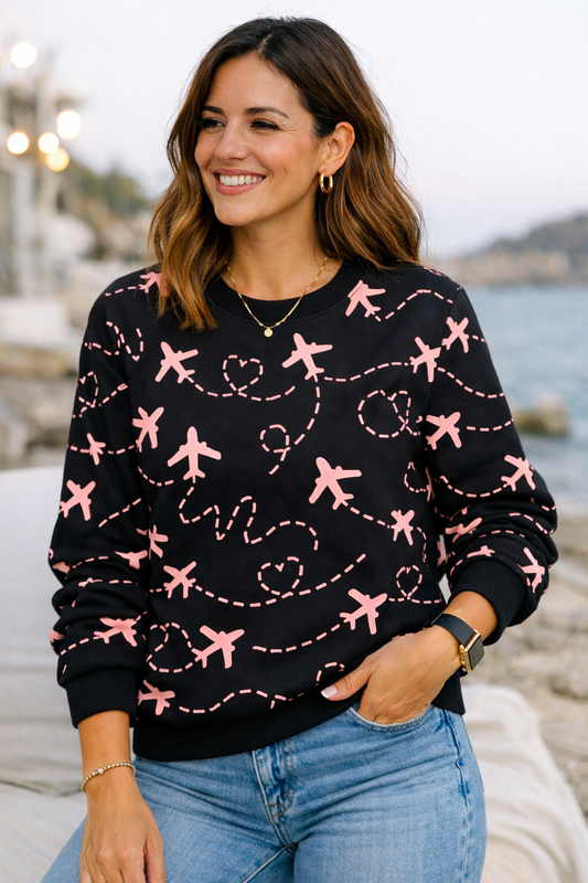 Quirky Aircraft Print Pink Sweatshirt