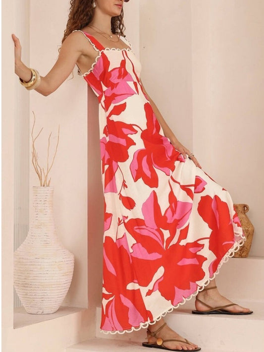 Stylish Floral Print A Line Maxi Dress
