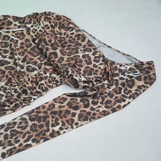 Smart Side Slit Leopard Print Long Sleeve Dress