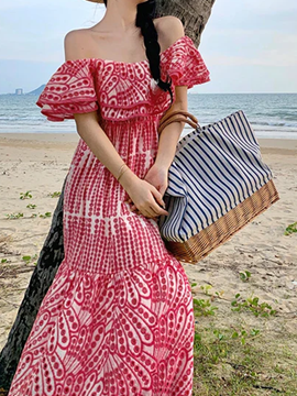 Pretty Off Shoulder Pink Cut Out Maxi Dress