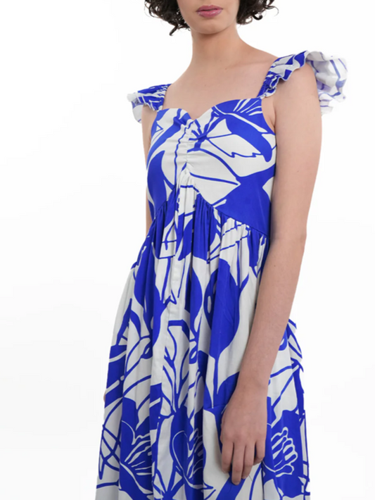 Smart Sleeveless Floral Print Blue Maxi Dress