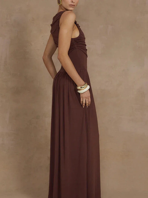 Stylish Ruched Brown Sleeveless Maxi Dress