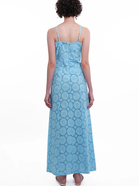 Summer Fashion Sky Blue Eyelet Maxi Dress