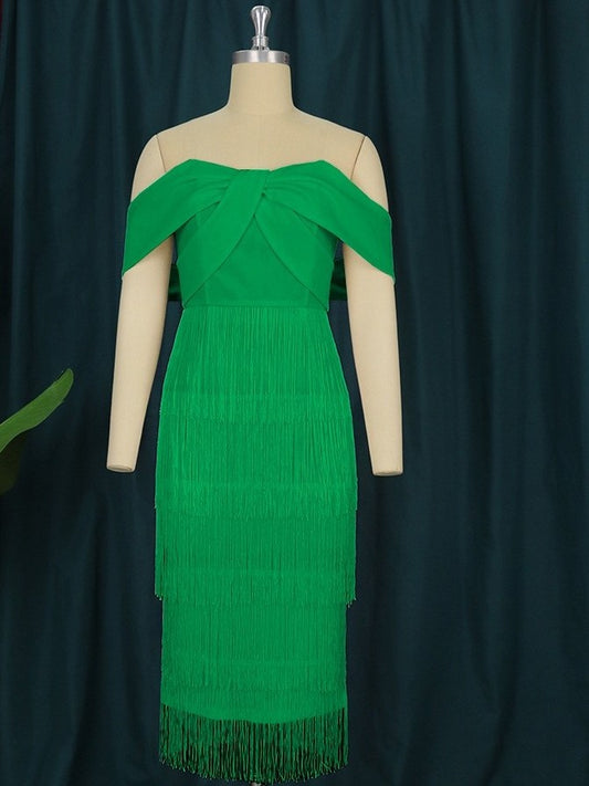 Fashionable Tassels Solid Boat Neck Dress - Ships in 24 Hrs