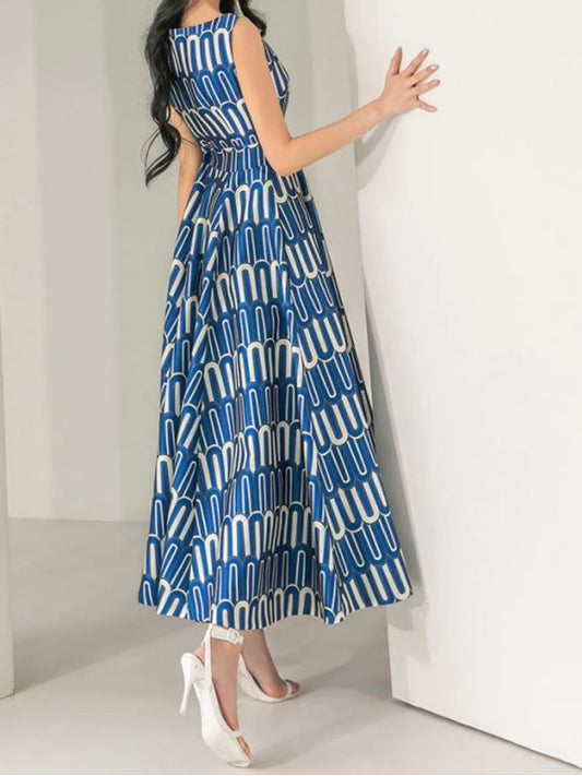 Elegant Printed O Neck Party Dress - Ships in 24 Hrs