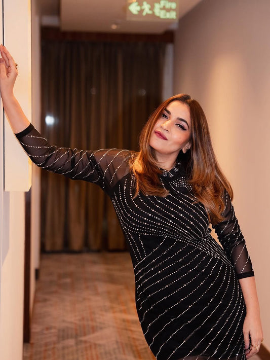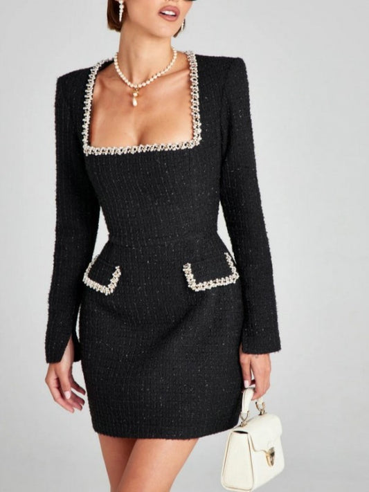 Premium Fashion Embellished Long Sleeve Black Bodycon Dress