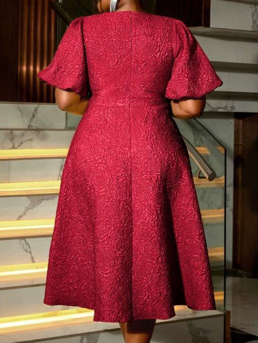 Gorgeous Carved Pattern Solid High Rise Flower Decor Red Midi Dress