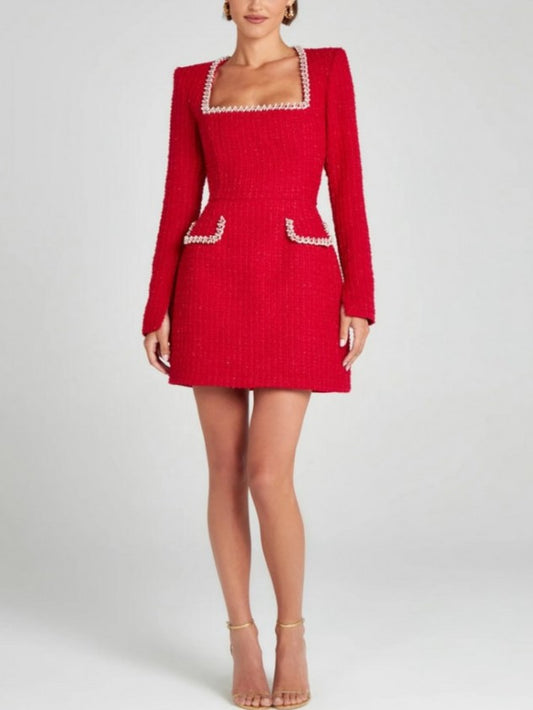 Premium Fashion Embellished Long Sleeve Red Bodycon Dress
