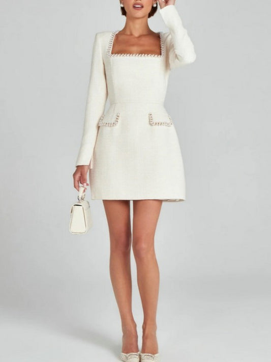 Premium Fashion Embellished Long Sleeve White Bodycon Dress