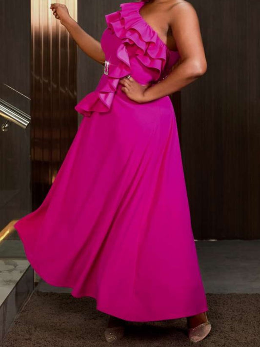 Premium One Shoulder Pink Sleeveless Maxi Dress