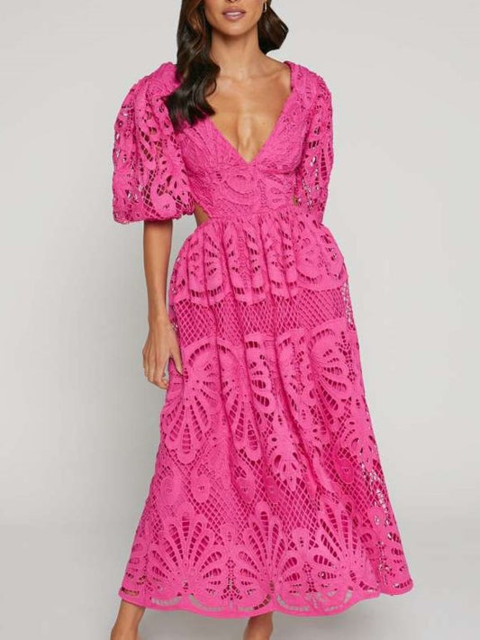 Fabulous Lantern Sleeve Lace V Neck Dress