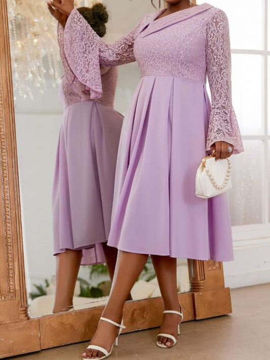 Sweet Long Sleeve Light Purple Fitted Dress