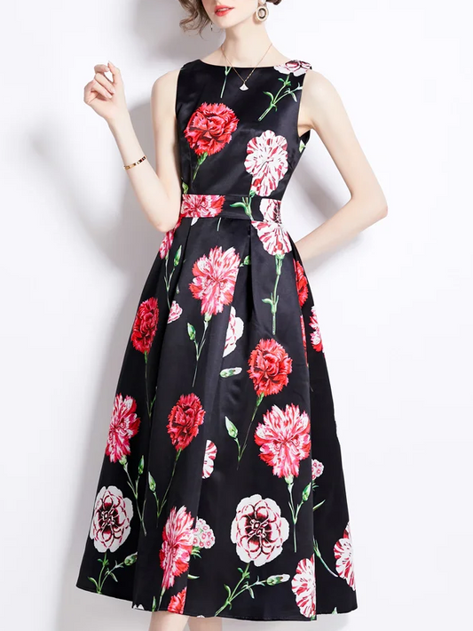 Timeless Black Floral Print Party Dress