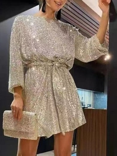 Classy Short Ruffle Sleeve High Rise Fitted Dress