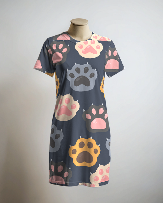 Wow Paw Print T Shirt Dress