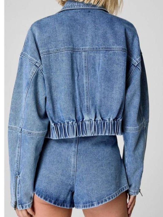 Premium Fashion Denim Lapel Jacket Blue Co Ord Set