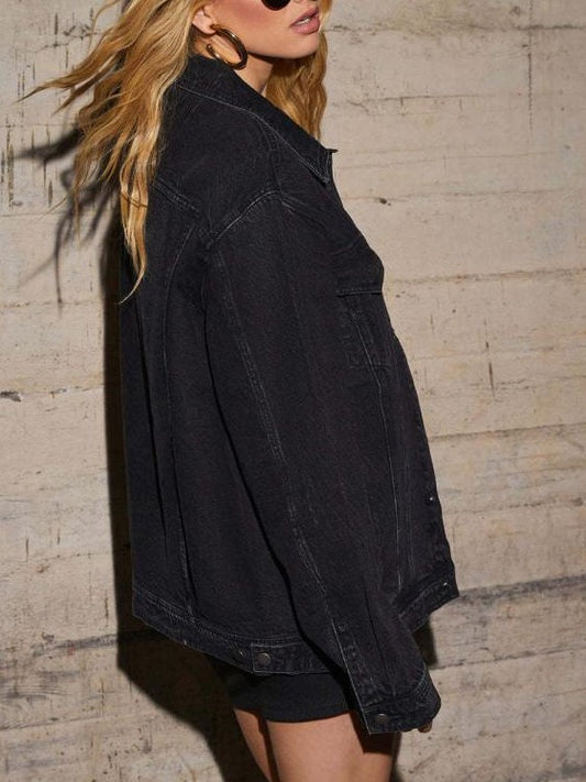 Premium Fashion Denim Lapel Jacket Black Co Ord Set