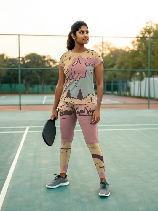 Pickleball | Paddleball | Activewear Coord Set Tshirt With Tummy Tuck Leggings | Club Patch Print
