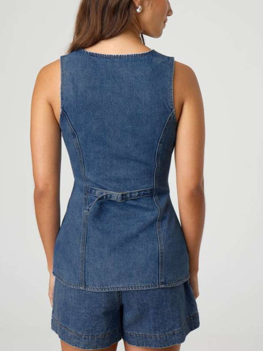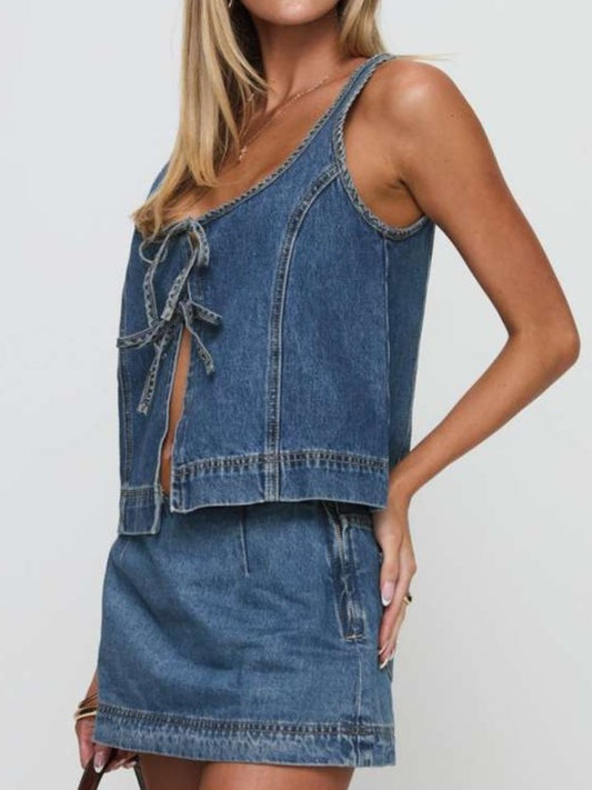Trendy Lace Up Denim Vest Skirt Co ord Set
