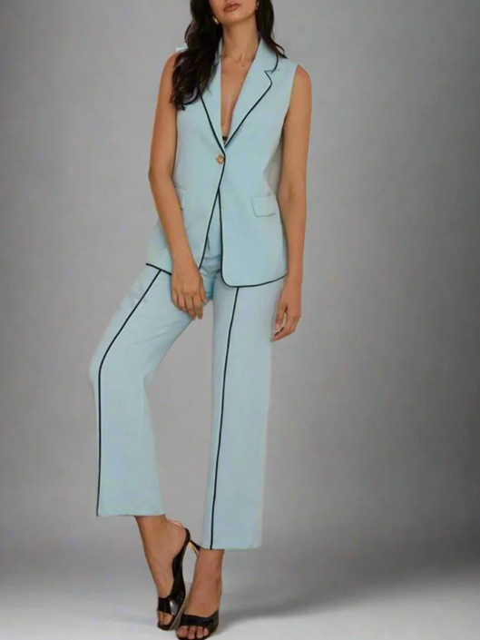 Splendid Short Puff Blazer With Wide Leg Pants Set