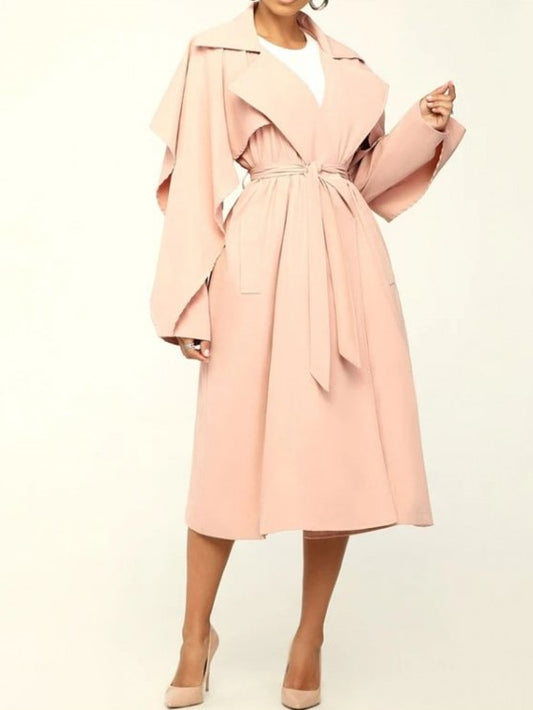 Modern Ruffles Long Sleeve Apricot Trench Coat