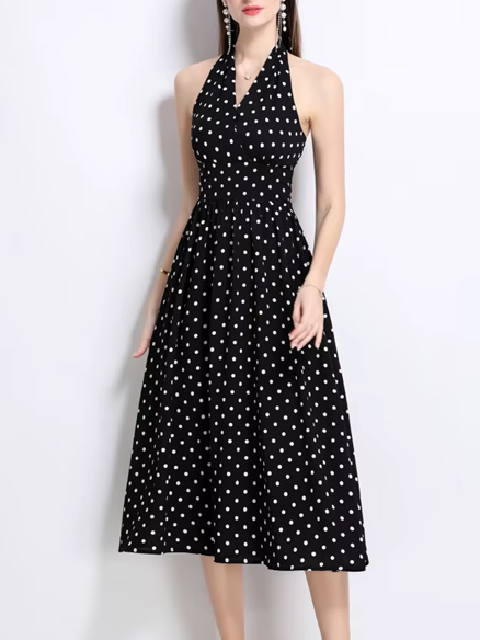 Enhance your wardrobe with our Bohemian Retro Dot French Style Dress. This dress boasts a V-neck design, zipper closure, and empire waistline for a flattering silhouette. The mid-calf length and sleeveless design make it perfect for any occasion. Its non-stretch fabric is adorned with a unique printed pattern, adding a touch of retro charm to your look. Upgrade your style game with this must-have dress.