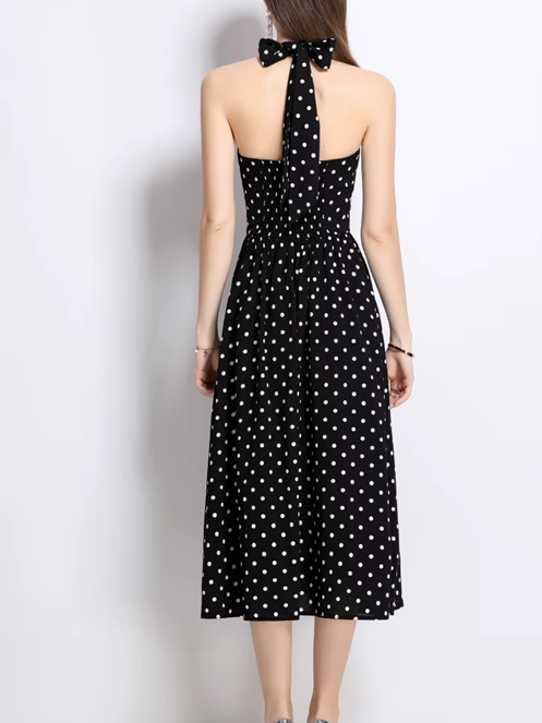 Bohemian Retro Dot French Style Black Dress - Ships in 24 Hrs