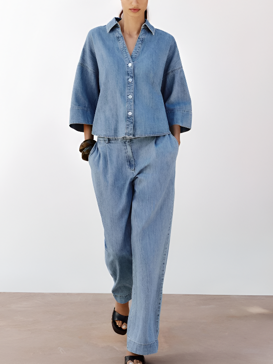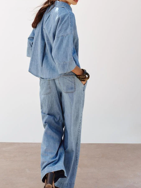 Relaxed Fit Solid Denim Cardigan - Ships in 24 Hrs