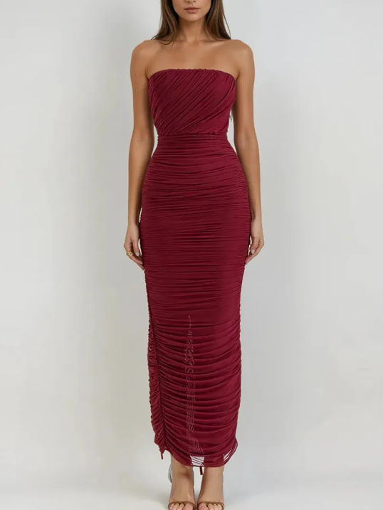 Chic Gradient Tube Strapless Ruched Red Maxi Dress